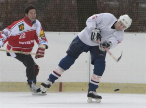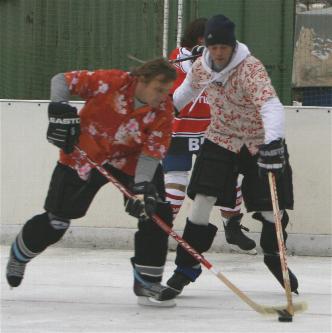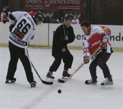Im zweiten Spiel konnten die Friends of BelAmi das Ergebnis überraschend erträglich gestalten: Nur 1:3 gegen den scheinbar übermächtigen Gegner Holiday on Ice. Ebenfalls bemerkenswert die Ausrüstung der Friends: Während alle anderen Teams in Eishockey-Klamotten aufliefen, genügten den Jungs einfache Inline-Schützerchen. Respekt! Die höchste Klatsche des Turniers gab es anschließend für die Turbine, die von Holiday on Ice standesgemäß mit 0:4 an den Glühweinstand geschickt wurde.